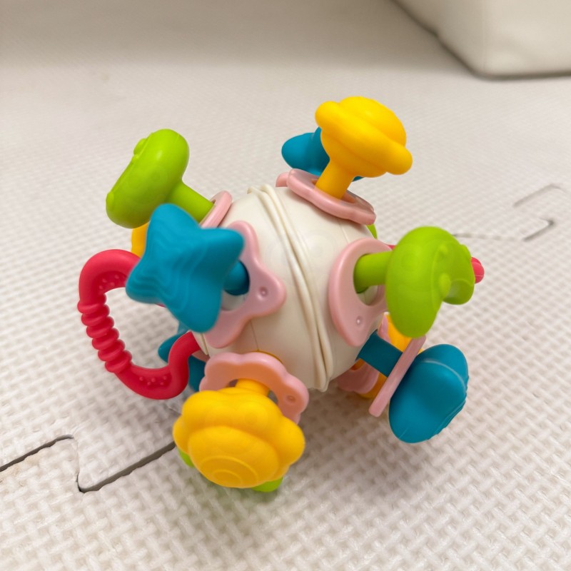 Kolorowa Grzechotka w Kształcie Piłki od marki WOOPIE to idealna zabawka dla najmłodszych, wypełniona drobnymi koralikami i zaprojektowana z myślą o niemowlętach. Kształt i wielkość zostały dostosowane do umiejętności i potrzeb dzieci, a każdy z okręgów obraca się, wydając charakterystyczny dźwięk. Uchwyty grzechotki są wykonane z gumy, co zapewnia komfort użytkowania.