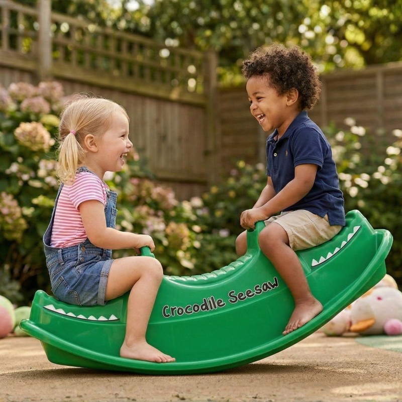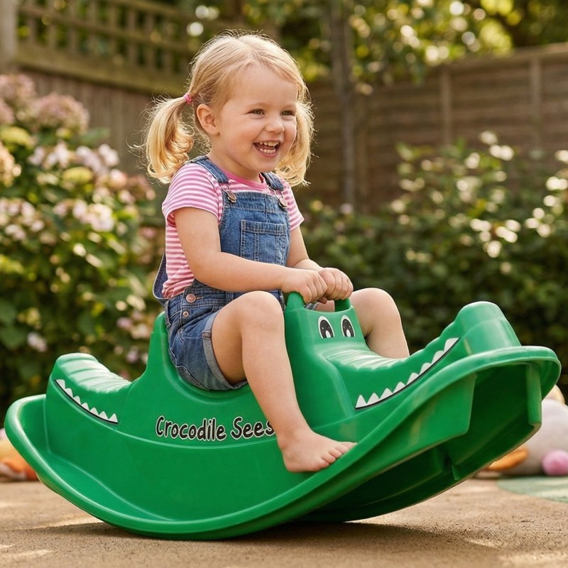 Dwumiejscowy bujak z motywem Krokodyla marki Woopie zapewnia nie tylko mnóstwo radości, ale i wspiera rozwój fizyczny maluchów. Przeznaczony dla 1–2 dzieci, idealnie sprawdzi się zarówno w domu, jak i w ogrodzie. Jego ergonomiczny kształt, wygodne siedziska oraz uchwyty do trzymania gwarantują bezpieczną i komfortową zabawę przez długi czas. Produkt wykonano z trwałego, odpornego na warunki atmosferyczne tworzywa, które doskonale znosi intensywną eksploatację. To świetna alternatywa dla klasycznych huśtawek i bujaków – dziecko może się bawić samodzielnie lub w parze, ucząc się przy tym współpracy i równowagi. Lekka konstrukcja umożliwia łatwe przenoszenie produktu w dowolne miejsce. Intensywna zieleń w połączeniu ze stylizacją na krokodyla przyciągają uwagę dzieci i zachęcają do aktywnej zabawy! Bujanie się na tej huśtawce to nie tylko świetna rozrywka, ale i forma naturalnej gimnastyki, która pozytywnie wpływa na rozwój motoryki dużej, równowagi oraz koordynacji ruchowej.