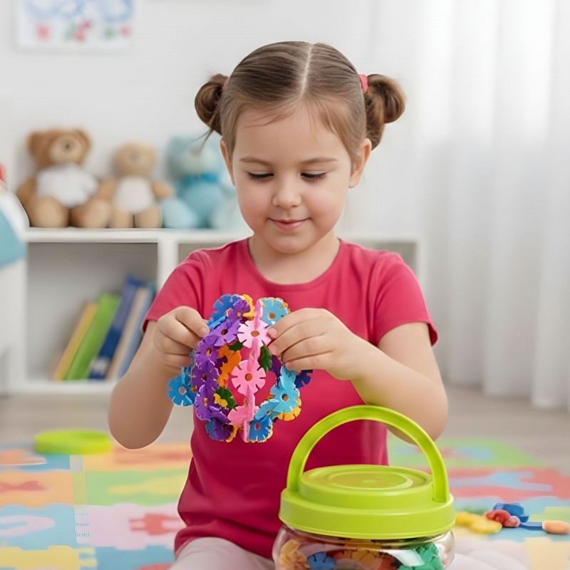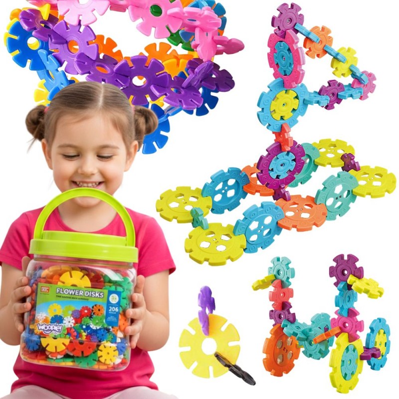 Klocki Konstrukcyjne Wafle od marki WOOPIE zwrócą uwagę i zafascynują Twoje dziecko. Kolorowe elementy przypominają wyglądem płatki śniegu. Klocki w bardzo łatwy sposób łączą się ze sobą, a ze względu na swoją budowę i sposób łączenia można z nich tworzyć ciekawe trójwymiarowe konstrukcje. Zastosowane otwory w śnieżynkach pozwalają na łączenie ich pod skosem, a nie tylko prostopadle. Zestaw zawiera 206 elementów zapakowanych w tubie. Samo budowanie konstrukcji rozwinie u dziecka logiczne myślenie, wyobraźnie, kreatywność oraz skoncentruje go podczas tworzenia . Przez układanie klocków dziecko poznaje kształty i kolory oraz ćwiczy zdolności manualne tzw. motorykę małą.