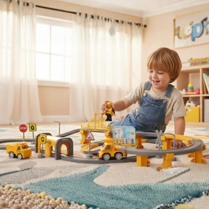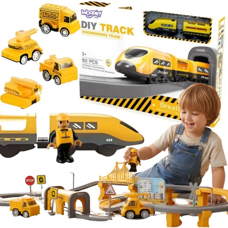 Fascynujący zestaw kolejki elektrycznej marki Woopie to prawdziwe centrum dowodzenia dla małych konstruktorów! Żółty pociąg ekspresowy z realistycznymi efektami dźwiękowymi wprowadzi dziecko w świat budowy, planowania tras i tworzenia własnych scenariuszy zabawowych. Dzięki bogatemu wyposażeniu w mosty, tunele, sygnalizację świetlną i pojazdy budowlane, maluch może komponować nieograniczoną liczbę układów torowych, a następnie obserwować, jak pociąg mknie przez ich autorskie miasto. To zabawka, która łączy ekscytację prawdziwej kolei z kreatywnością dziecięcego świata