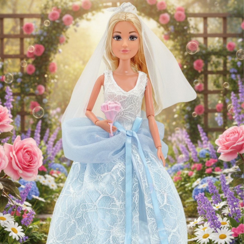 Lalka Lily Panna Młoda od marki Woopie to wyjątkowa propozycja, która pozwoli każdej dziewczynce przeżywać magiczny Dzień Ślubu. Lalka ma na sobie efektowną suknię ślubną z koronkową górą i wielowarstwowym, tiulowym dołem. Całość dopełniają welon oraz bukiet w kształcie serca. W zestawie znajduje się również mini tort weselny. Jest to idealna zabawka do odgrywania scenariuszy związanych ze ślubem i weselem, rozwijając przy tym wyobraźnię i umiejętności społeczne. Produkt przeznaczony jest dla dzieci od 3 roku życia.