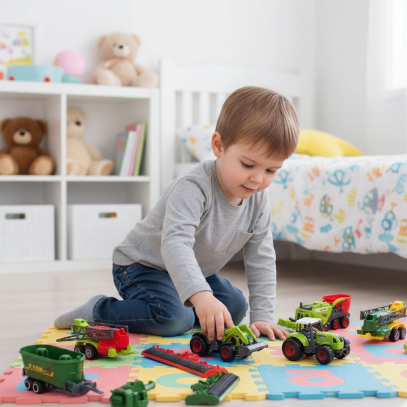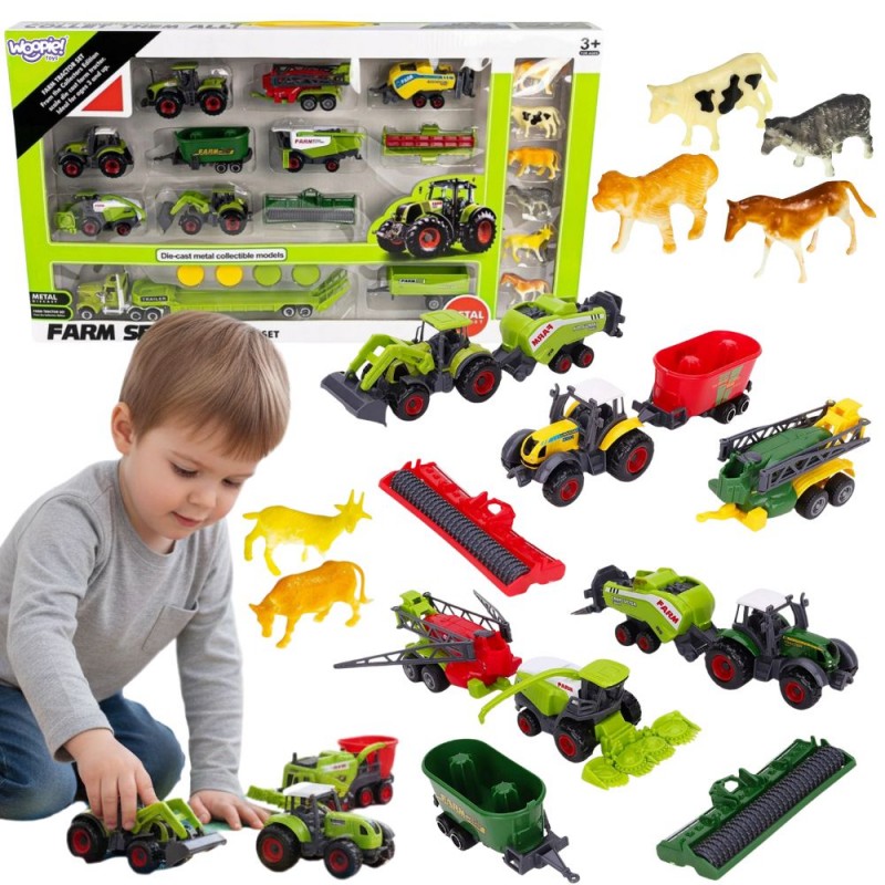 Pozwól dziecku poczuć się jak prawdziwy rolnik! Ten bogaty zestaw traktorów, maszyn rolniczych i figurek zwierząt od marki WOOPIE zapewni godziny kreatywnej zabawy i odgrywania scenek z życia na wsi. Metalowe elementy die-cast gwarantują trwałość i realistyczny wygląd, a różnorodność pojazdów pozwala na tworzenie wielu scenariuszy zabawy. Zestaw rozwija wyobraźnię, uczy podstawowych zasad pracy na gospodarstwie i pozwala odkrywać świat maszyn rolniczych. Idealny pomysł na prezent dla każdego małego fana traktorów i farmy!