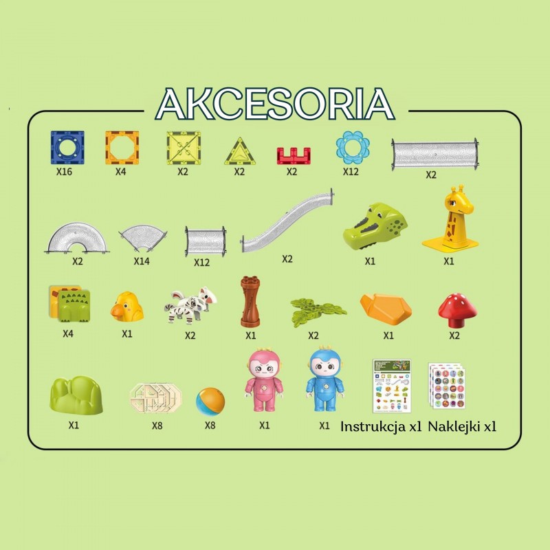 Tor Kulkowy Zwierzęcy Raj od marki WOOPIE to idealna propozycja dla młodych budowniczych. Dzięki magnetycznym elementom, które łatwo się łączą, dzieci mogą cieszyć się budową różnych struktur, rozwijając swoją świadomość przestrzenną i zdolności motoryczne. Wykonany z materiałów wysokiej jakości, bezpiecznych dla dzieci, to fantastyczny prezent, który może zainspirować przyszłych inżynierów lub architektów.