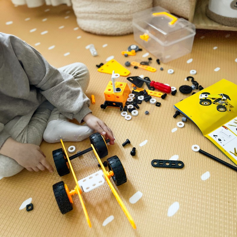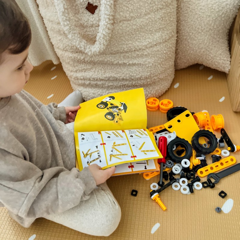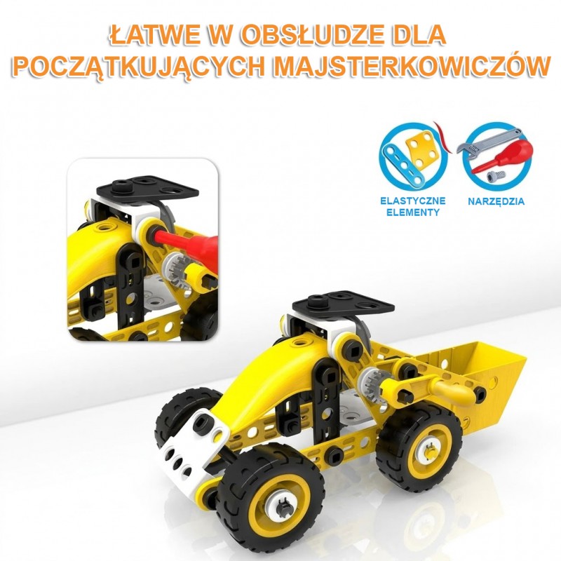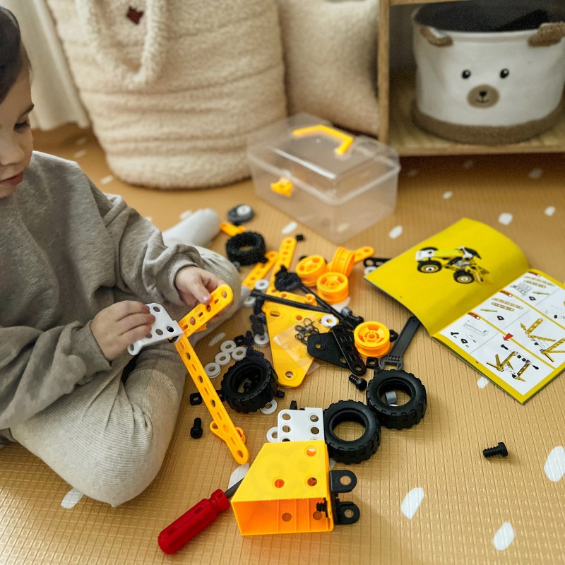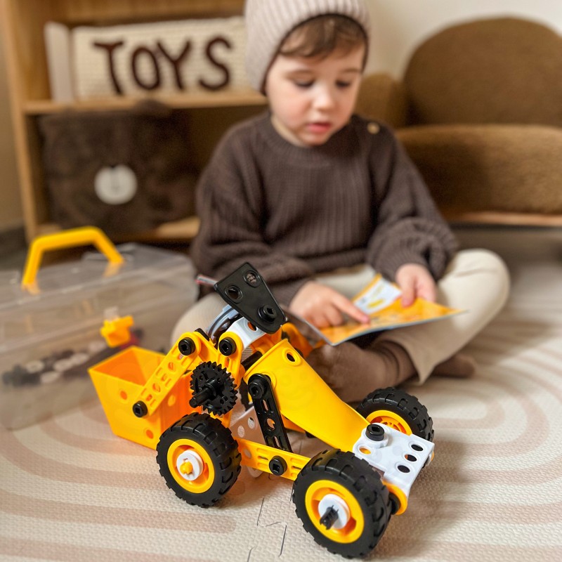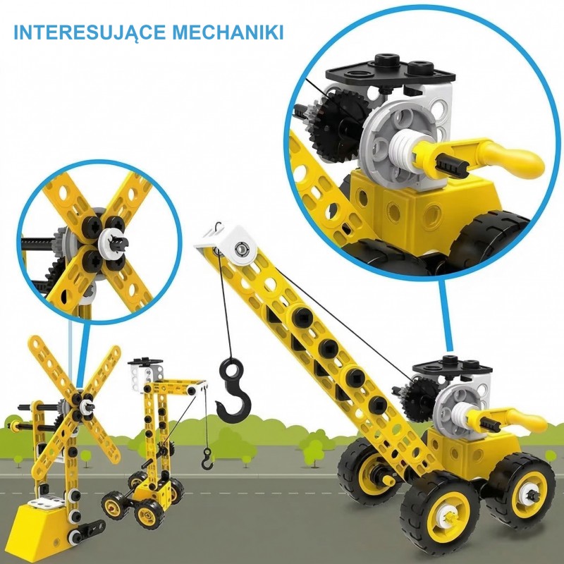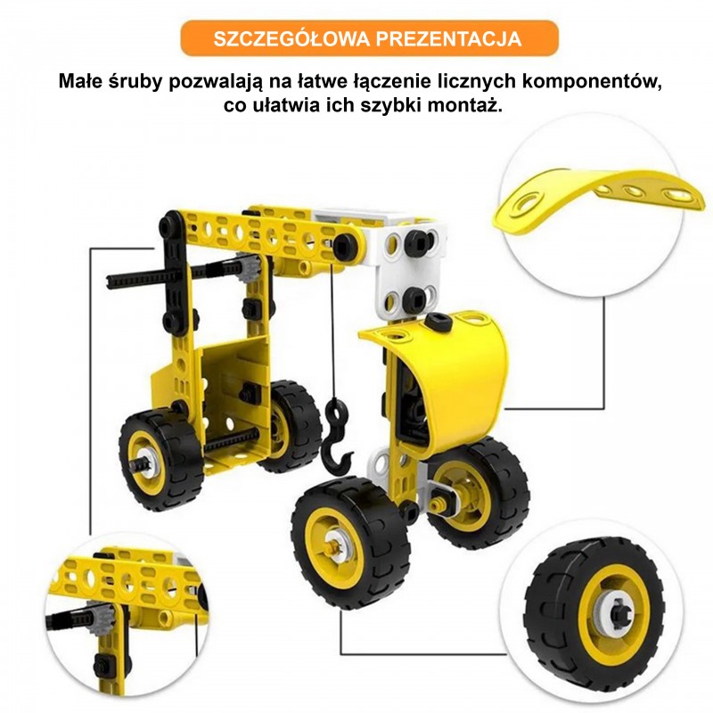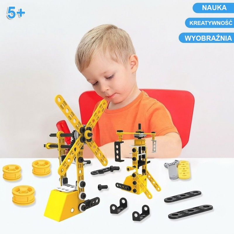 Zestaw konstrukcyjny 8w1 marki WOOPIE to zaproszenie do fascynującego świata inżynierii, gdzie każdy mały budowniczy może poczuć się jak prawdziwy twórca i odkrywca. Dzięki bogatej kolekcji różnorodnych elementów dzieci mają szansę samodzielnie skonstruować ruchome maszyny, od potężnego dźwigu i obracającego się wiatraka, po zwrotną ciężarówkę. Prosty i intuicyjny system łączenia części za pomocą bezpiecznych narzędzi sprawia, że składanie modeli dostarcza mnóstwa radości oraz buduje ogromne poczucie satysfakcji z własnoręcznie wykonanej pracy. To nie tylko doskonały sposób na wciągające zajęcie czasu, ale przede wszystkim mądra zabawa w duchu STEAM, która naturalnie rozbudza ciekawość świata, uczy cierpliwości i zachęca do pierwszych eksperymentów z mechaniką.